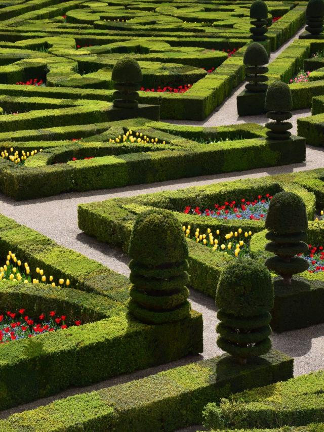 Le potager décoratif : Un potager comme ça, ça ne peut venir que de la Renaissance ! C’est un véritable jardin coloré digne d’un feu d’artifice qui a hérité du style à la fois monacal français et italien.